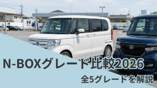 比較記事 N-BOXグレード比較【2026年版】標準・カスタムどれを選ぶ? N-BOXの全5グレード(G・EX・カスタムG・カスタムEX・カスタムEXターボ)を価格・装備・外装で徹底比較。元営業のごんたが、あなたにぴったりのN-BOXグレードをわかりやすく解説します。 2026.04.07 比較記事