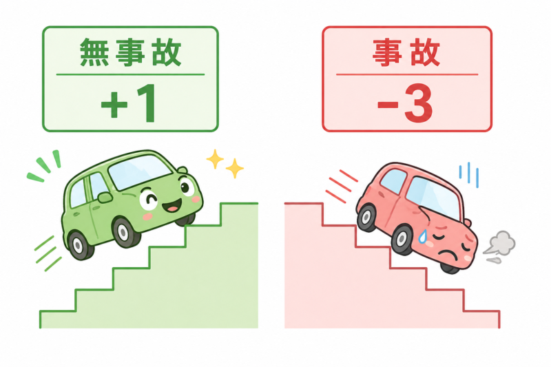 等級の動き方を整理しましょう。ポイントは「事故の種類によってダウン幅が違う」ことです。